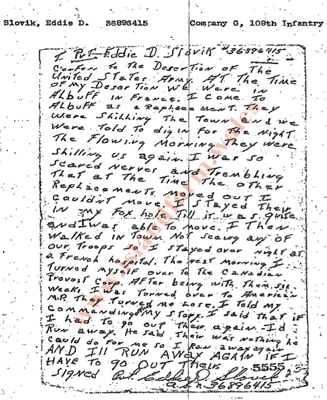 "Eddie, when you get up there, say a little prayer for me." Slovik replied with