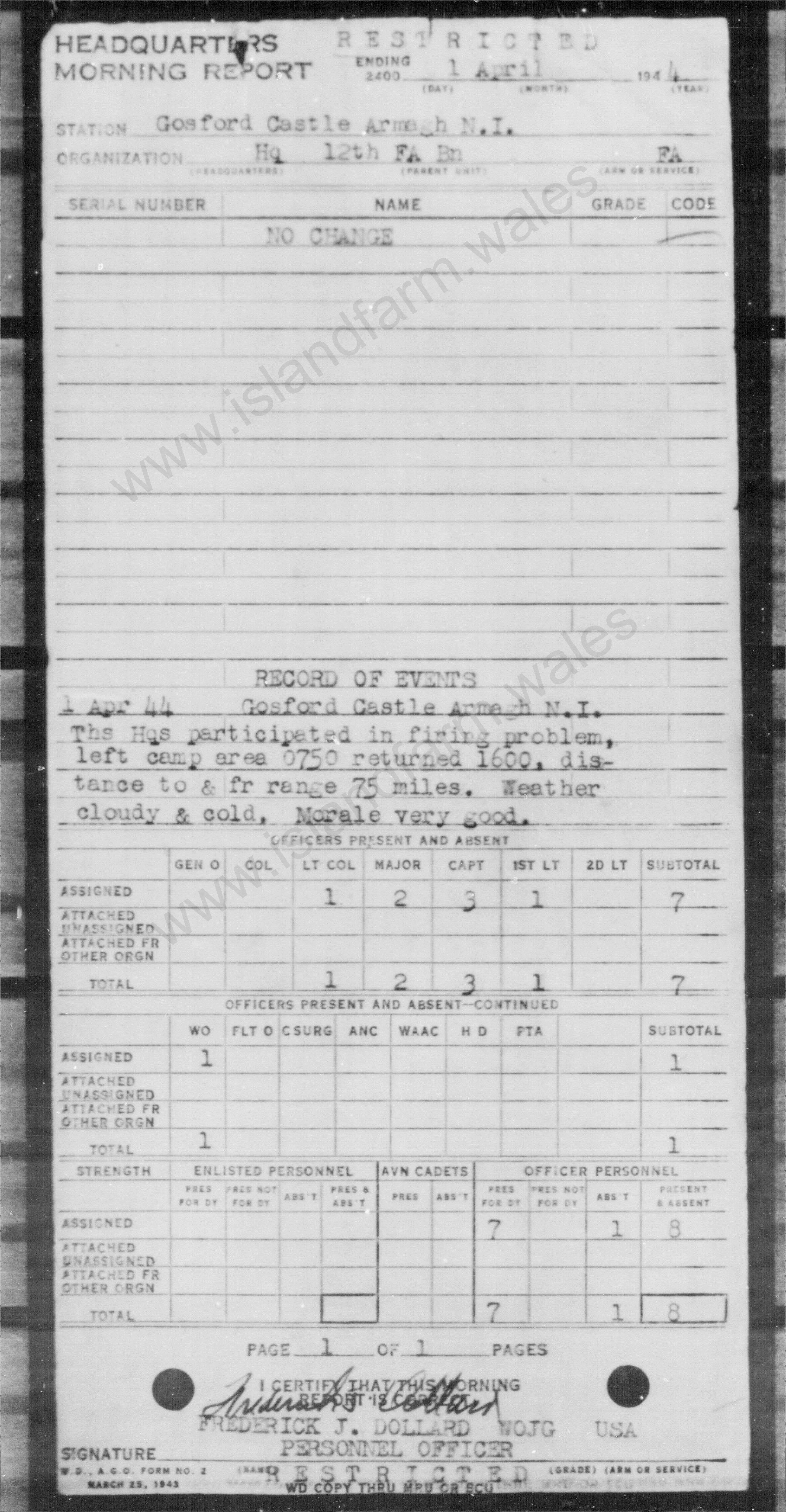 17th April 1944 -HQ of the 12 FA Battalion - Leaving Ireland The