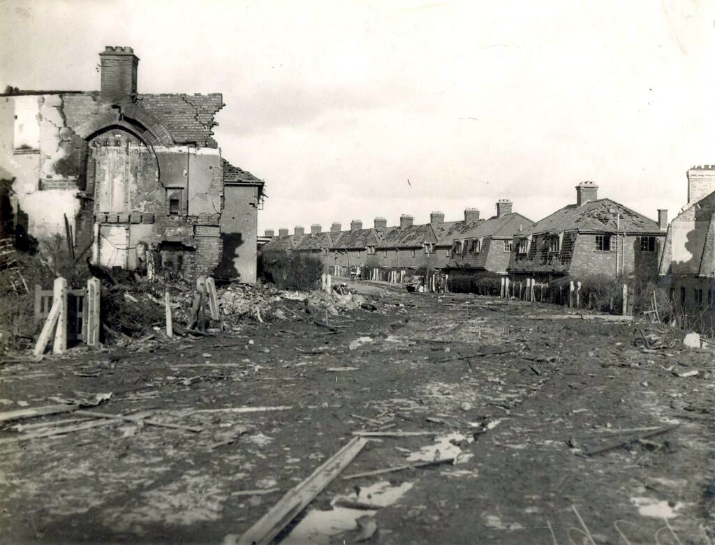 The worst single incident during the war in Swansea happened on the second night of 'The Three Nights' Blitz'. A whole stick of bombs hit a row of houses in Teilo Crescent, which was already in flames. The lives of the street's residents, as well as fire fighters and wardens who were battling the fires, were tragically wiped out, amounting to a total of 46 deaths and many more injuries.